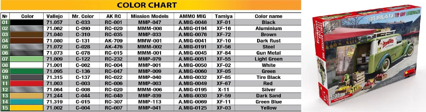 | Short Description | Miniart 1/35 Fruit Delivery Van TYP 170V Lieferwagen # 38044 |