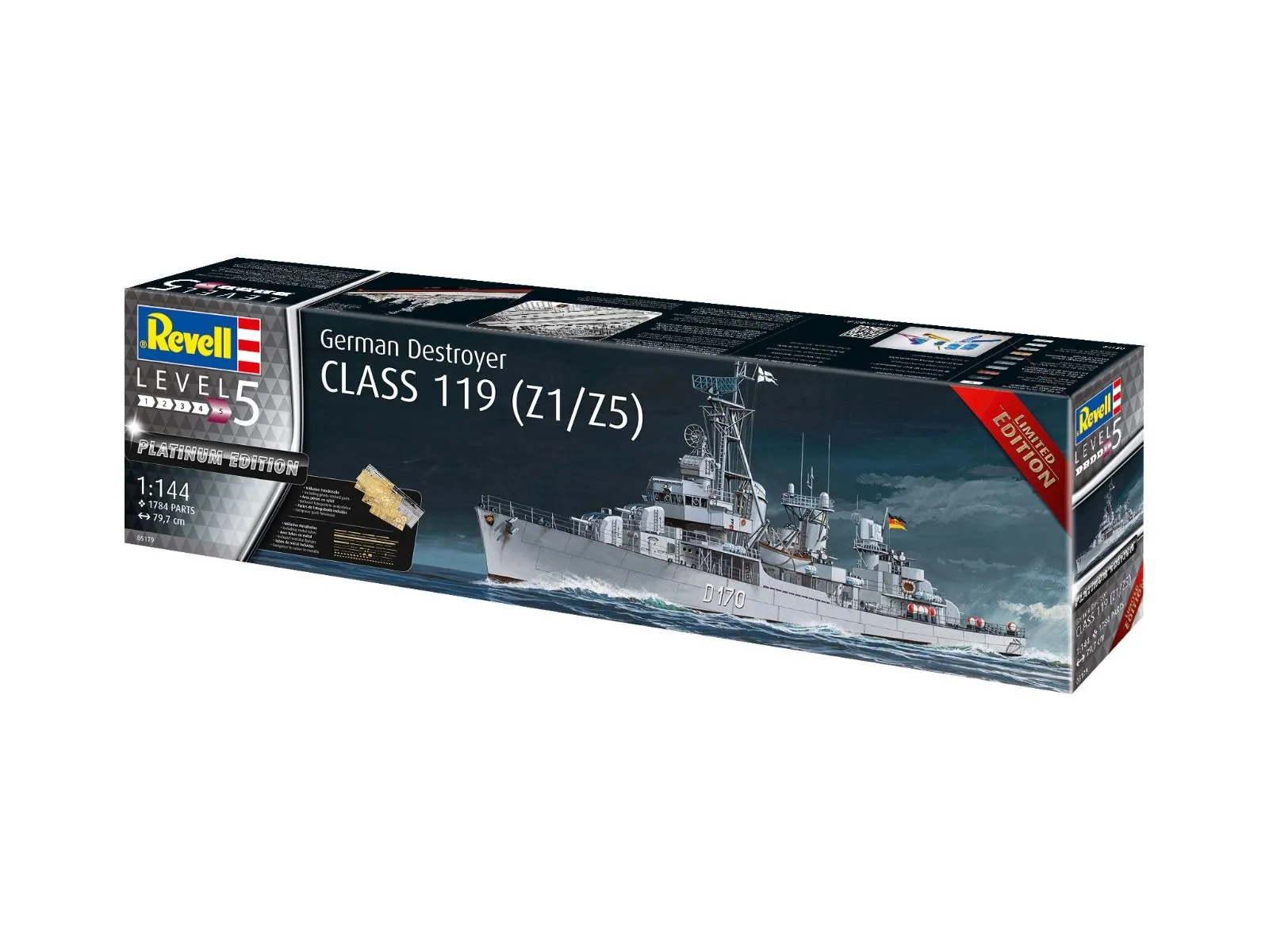 The model kit is upgraded to the “Platinum Edition” with high-quality photo-etched and metal parts and allows for an exceptionally detailed model of the Z1 or Z5 destroyers.