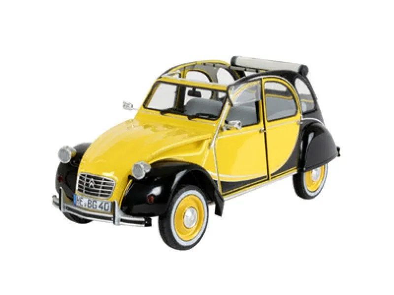 The 2CV was first presented to the public in 1948. With this puristic, economical small car that was easy to maintain and simple to operate, Citroën offered a robust mass-produced people’s car that had suitably good suspension for use on the sparsely built up road network. From 1981, by which time the 2CV had long been a cult object, a two-colour version was launched, the red and black 2 CV 6 Charleston which, in September 1982, was followed by a yellow and black version, both equipped with an air-cooled, 29 hp, 0.6 litre, two-cylinder horizontally opposed engine. Like the original, the model kit offers chrome wheel hubs, the typical chrome head lamps, with a multi-part engine and naturally a movable bonnet.